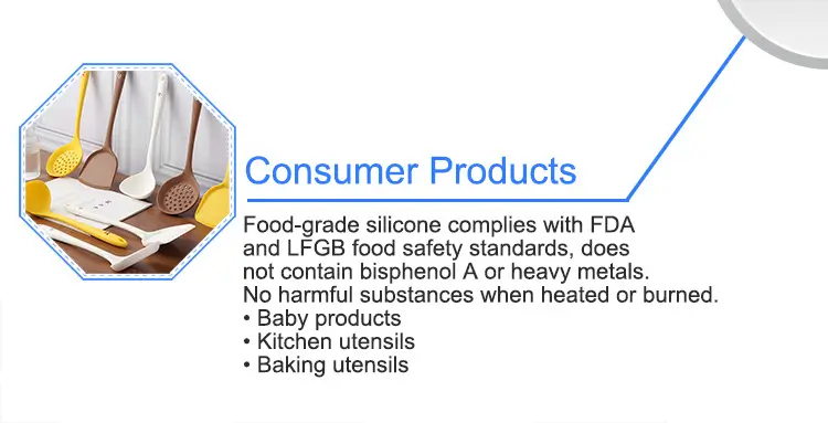 Silicones are generally non-toxic and inert, making them safe for use in food-contact applications such as cookware, baking molds, and kitchen utensils.
